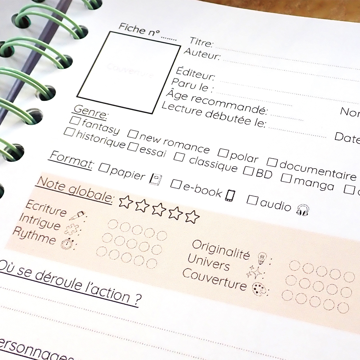 Ce carnet permet de suivre les livres lus, d’en consigner l’essentiel dans les fiches de lecture, d’organiser les sagas, de lister les envies d’achat et de visualiser ses habitudes de lecture. Il devient à la fois un outil d’organisation et un souvenir des histoires qui ont marqué.