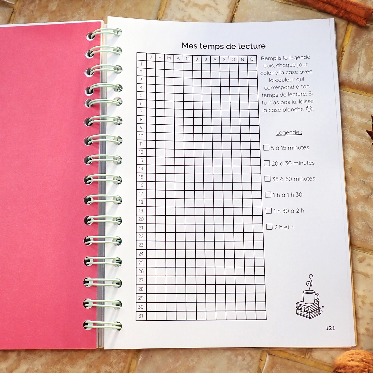 - 52 fiches de lecture (double-page) vierges à remplir ;