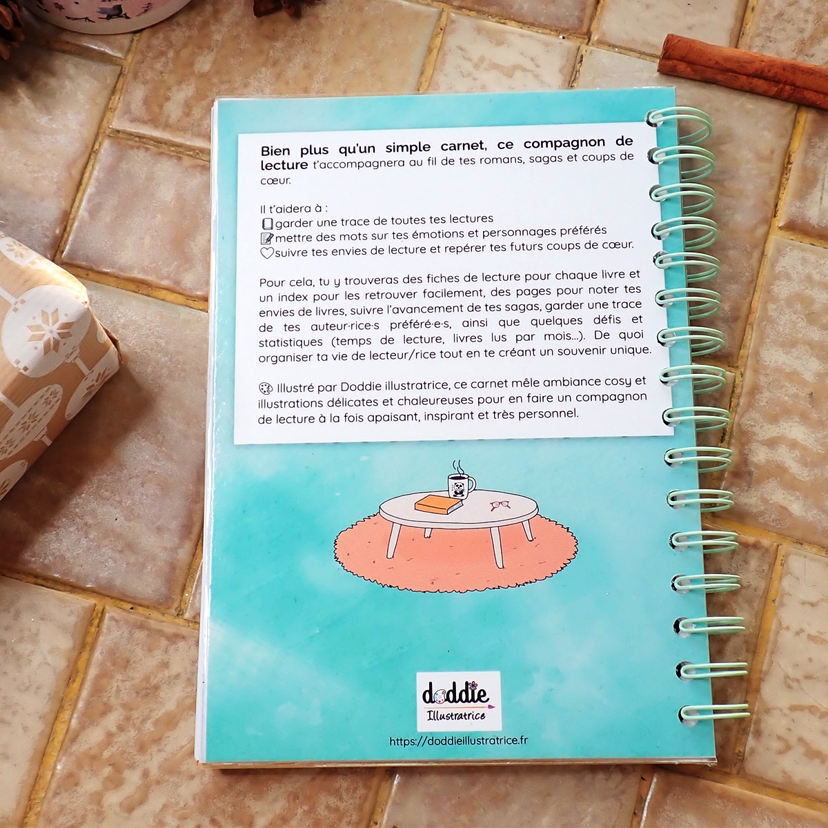 Ses illustrations douces et son ambiance cosy créent un cadre chaleureux pour noter impressions, avis et souvenirs de lecture.