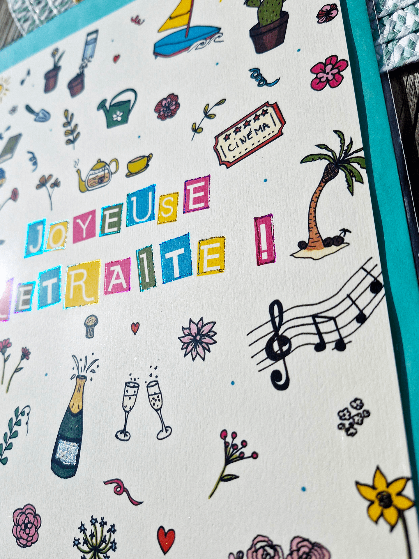 Un collègue ou un proche part en retraite ? Offrez-lui un concentré de bonne humeur avec cette carte Joyeuse Retraite version XXL ! À la fois pétillante et pleine de clins d’œil aux plaisirs de la vie, elle permettra à chacun de laisser un mot pour célébrer ce moment unique.